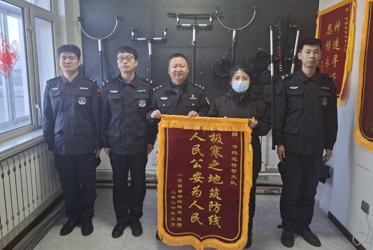 呼瑪公安雪中救援受困車輛獲贈錦旗