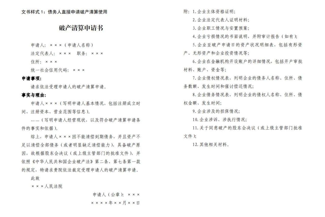 慶安縣人民法院向當事人免費提供破產(chǎn)申請書格式文本
