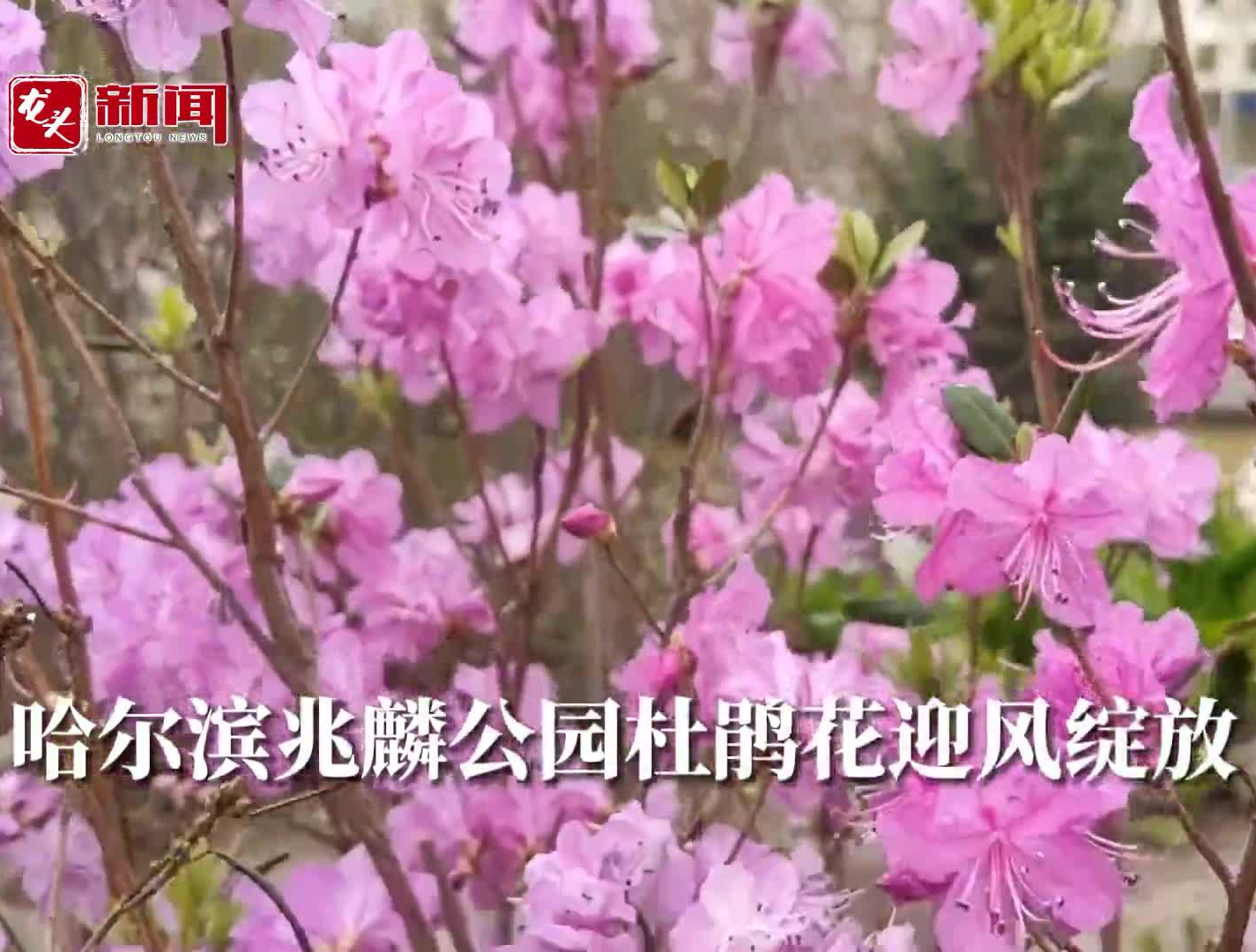 哈爾濱兆麟公園杜鵑花迎風綻放