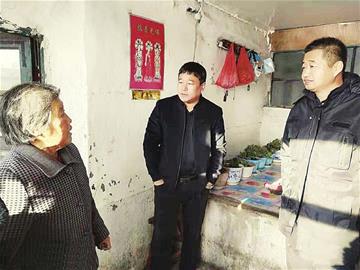 圖為北安市二井鎮(zhèn)黨員干部在聯(lián)立村貧困戶李艷芝(左)家了解其生活狀況,幫助解決困難。