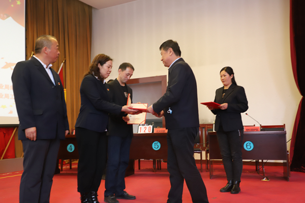 阿木爾林業(yè)局黨委書記胡守慶(右)為獲得第一名代表隊(duì)頒發(fā)榮譽(yù)證書。