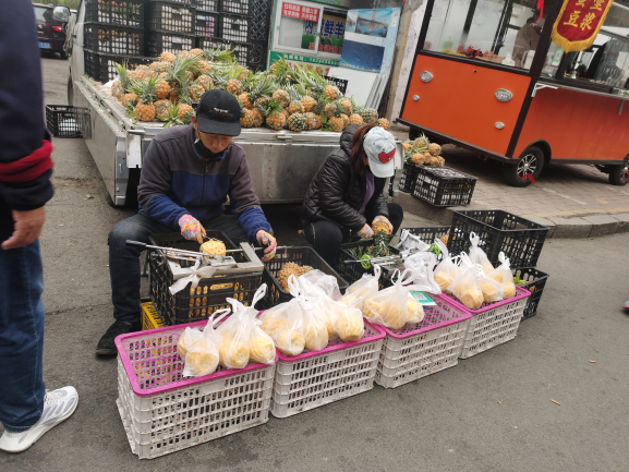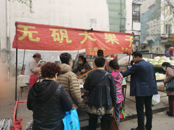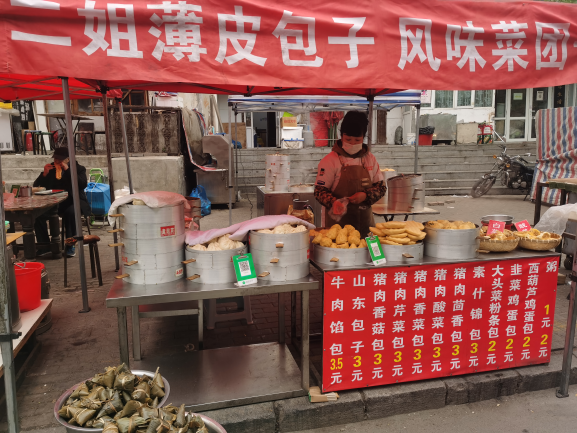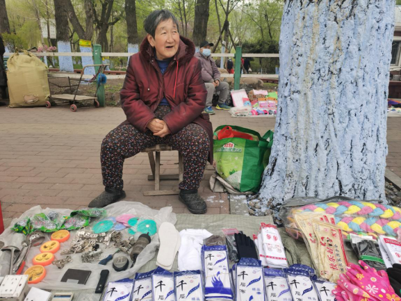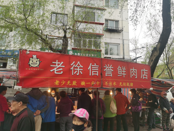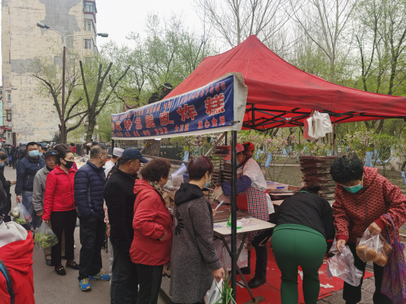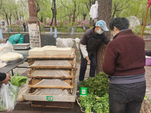早市的吸引力在于“看”。早市上,各攤主會(huì)想各種各樣的方式招攬顧客,有的會(huì)用廣告牌,有的會(huì)吆喝。早市上的商業(yè)運(yùn)作方式也非常有趣,比如現(xiàn)場(chǎng)擠羊奶,旁邊拴幾頭奶羊,當(dāng)招牌;賣(mài)刀切面的現(xiàn)場(chǎng)切,炸油條的現(xiàn)場(chǎng)炸,都是明檔手工,這幾乎是大多數(shù)早市商家的促銷(xiāo)手段。也有推銷(xiāo)老花鏡的,賣(mài)衣服的,會(huì)現(xiàn)場(chǎng)吆喝“正宗商品專(zhuān)柜,清倉(cāng)促銷(xiāo)”——這大概是現(xiàn)在“直播帶貨”的線(xiàn)下模式。住在早市附近的居民,有的會(huì)在樓上用繩子吊下個(gè)籃子,讓攤主把東西放到籃子里,直接拽上去。