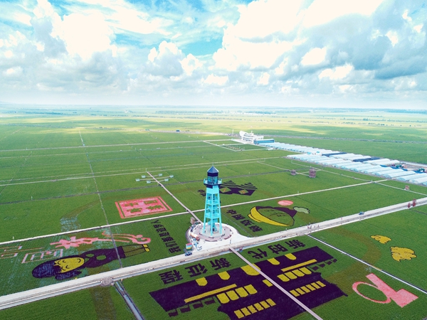 富錦市萬畝水稻公園稻田畫航拍(圖片由黑龍江省文旅廳提供)