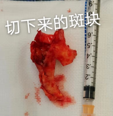 考慮到張大爺既往有腦梗死病史和糖尿病病史,入院后,孫國章副主任團(tuán)隊為張大爺進(jìn)行了術(shù)前精準(zhǔn)評估,完善頭部核磁共振、全腦血管造影檢查,并控制好血壓、血糖等各項指標(biāo)。隨后,孫國章副主任在顯微鏡下精準(zhǔn)為張大爺實施了頸動脈內(nèi)膜剝脫術(shù),切除了長度約4cm動脈粥樣硬化斑塊。據(jù)了解,由于是在頸動脈上做手術(shù),對手術(shù)技術(shù)及條件要求非常高,孫國章副主任在術(shù)中克服種種困難,才最終憑借豐富的臨床經(jīng)驗成功完成此次手術(shù)。