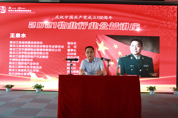 黑龍江省誠(chéng)信建設(shè)促進(jìn)會(huì)物業(yè)專業(yè)委員會(huì)主任、黑龍江寶宇物業(yè)公司總經(jīng)理 王泉水以《后疫情時(shí)代如何更好的開展物業(yè)服務(wù)》為題做了專題講座。王泉水曾帶領(lǐng)全體員工連續(xù)創(chuàng)建國(guó)家示范項(xiàng)目4個(gè)、省級(jí)“十佳”項(xiàng)目5個(gè),其他管理項(xiàng)目全部創(chuàng)建為省級(jí)項(xiàng)目,先后在全省講授物業(yè)課18次、聽眾3000余人,經(jīng)常接到物業(yè)人的電話和微信對(duì)相關(guān)事務(wù)的解答、解釋并給予指導(dǎo)和幫助。