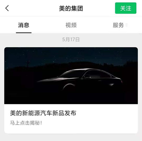 5月17日,美的集團(tuán)在其官方公眾號發(fā)文,預(yù)告將發(fā)布新能源車相關(guān)新品,并配有一張若隱若現(xiàn)的汽車宣傳海報(bào)。此舉一下激起市場猜測:難道美的也要造車了?