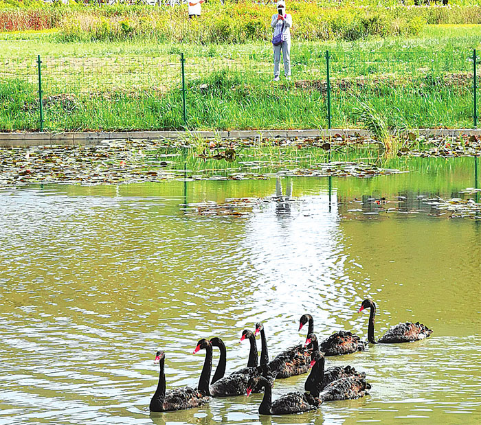 據(jù)大慶市城投公司蘭德湖公園管理處主任孟維凱介紹,這是大慶首次引進(jìn)黑天鵝,一共有10只,都是澳大利亞品種,5月25日傍晚剛放養(yǎng)到湖里。下一步,蘭德湖公園將陸續(xù)建設(shè)供天鵝棲息的小屋,并投入觀光游艇、腳踏船、觀光車、游樂設(shè)施等,為市民打造新的旅游打卡地。
