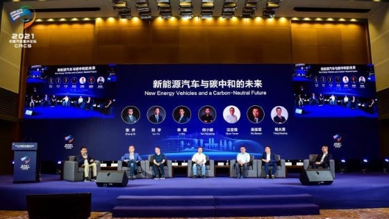 圖為2021中國汽車重慶論壇現(xiàn)場,造車新勢力共商新格局下的汽車行業(yè)發(fā)展之路?!≈鬓k方供圖