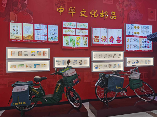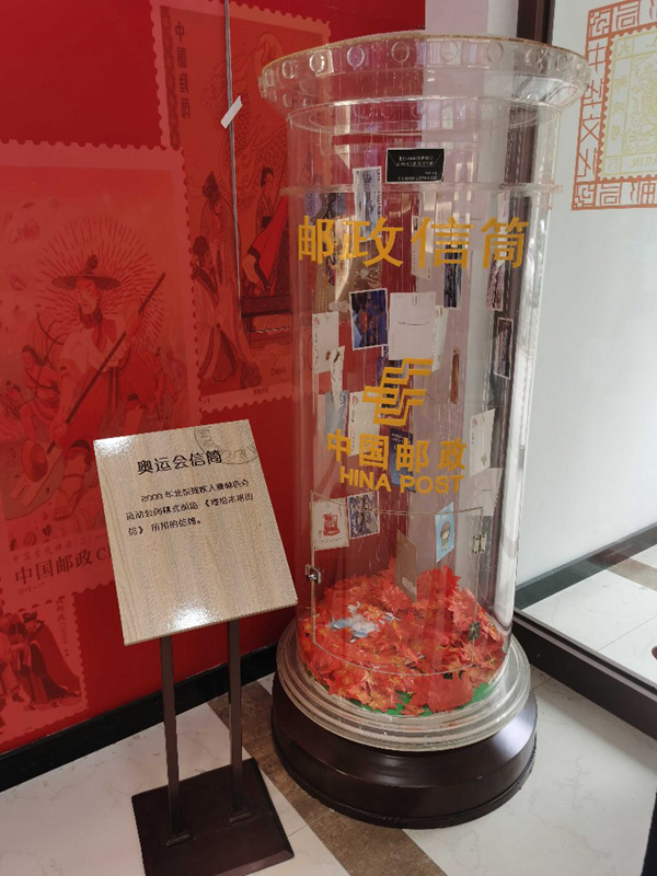 一進門右手邊,是一個透明的郵政信筒,它來自2008年北京殘奧會閉幕式,現(xiàn)場有很多人通過它投遞出了《寄給未來的信》。左右兩側(cè)的墻上,懸掛著中華文化郵品,用郵票的形式展示傳統(tǒng)文化,重陽節(jié)、梅蘭芳舞臺藝術(shù)、景德鎮(zhèn)瓷器等具有紀念意義的郵票都位列其中,這里是集郵愛好者的天堂。