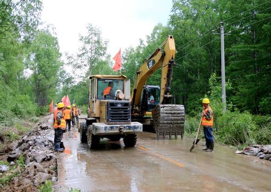 林碧線是呼中區(qū)通往外界的生命線,一旦沖毀將會嚴重影響呼中區(qū)人民群眾的生產生活。險情就是命令,呼源鎮(zhèn)、呼源管護區(qū)專業(yè)消防隊、大興安嶺地區(qū)森林消防支隊呼中大隊組成80余人搶險隊聯(lián)合行動,并調用裝載機3臺、鉤機1臺、戰(zhàn)旗車2輛、翻斗車4輛開展搶修,在區(qū)公安局交警大隊、區(qū)應急局、區(qū)水務局、雄關管護區(qū)、八達路橋公司等搶險人員的共同努力和艱苦奮戰(zhàn)下,成功修復了水毀橋頭,化解了險情。