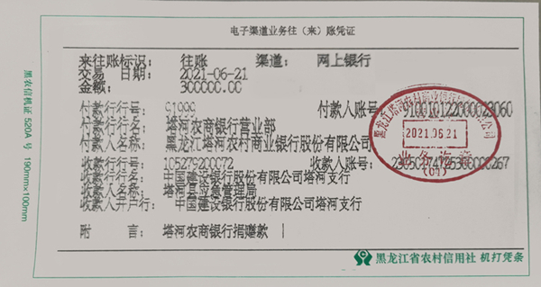 塔河農(nóng)商銀行行長樊民穎說,“作為扎根塔河、服務塔河的地方法人金融機構(gòu),塔河農(nóng)商銀行長期受到塔河縣委、縣政府和塔河人民的巨大關(guān)懷和鼎力支持,此次捐款我們希望和塔河人民共渡難關(guān),為抗汛救災貢獻自己的一份力量,我們已第一時間恢復正常營業(yè),與農(nóng)戶、企業(yè)積極對接,通過我們周到的金融服務、利民惠企的金融政策,切實發(fā)揮好金融‘主力軍’作用,助力全縣人民共同贏得抗汛救災、恢復生產(chǎn)戰(zhàn)役的全面勝利。”