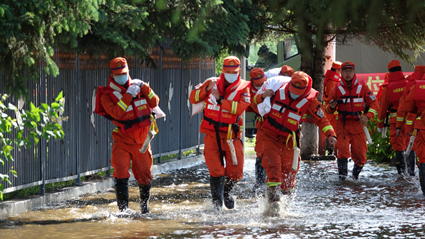 18日凌晨,記者在位于塔河鎮(zhèn)中央大街東端的塔河農(nóng)商銀行機關(guān)辦公樓前看到,漲勢很快的洪水正迅猛地漫過中央大街,向街邊的農(nóng)商銀行機關(guān)大樓、稅務局辦公樓和電視臺辦公樓等處涌來,而這幾個沿街單位地勢較低,很容易受到洪水的侵襲。為盡量控制洪水水勢,最大限度減少洪水造成的損失,塔河縣防指迅速調(diào)集人力物力,主要領(lǐng)導靠前指揮,廣大救援官兵奮勇爭先,在幾個臨街單位外圍用沙袋圍壩攔堵,并調(diào)動多臺高壓水泵抽水抗?jié)?,給幾個單位的救援提供了極大地助力,也為其自救創(chuàng)造了更多的時機。