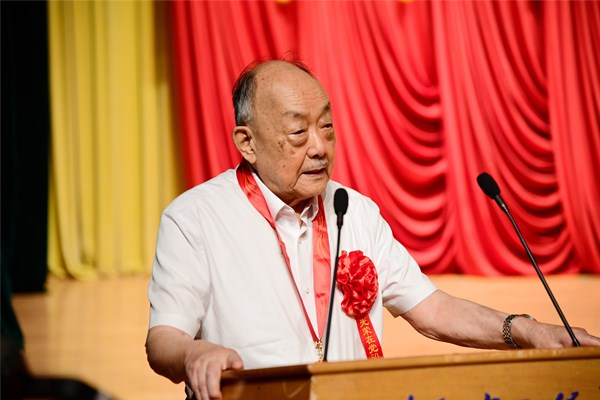 大會(huì)為“光榮在黨50年”的老黨員代表頒發(fā)紀(jì)念章,楊士莪院士作為黨齡56年的老黨員,發(fā)表了獲獎(jiǎng)感言,他說,“我們這批在黨的關(guān)懷和培養(yǎng)教育下成長(zhǎng)起來的一代,在黨的百年生日的時(shí)候,說實(shí)話心里千言萬語不知從何說起,要不然我就唱兩句現(xiàn)在電視上經(jīng)常聽到的歌曲。”楊院士深情唱響《唱支山歌給黨聽》,他說:“我的聲音雖然不好聽,但是這首歌能夠表達(dá)我的心意。唱支山歌給黨聽,我把黨來比母親……”。楊士莪院士的歌聲讓在場(chǎng)師生非常意外,這首沒有經(jīng)過彩排的歌曲,卻因真情實(shí)感走進(jìn)了師生們的心里,在他的帶動(dòng)下,在場(chǎng)師生也情不自禁地鼓掌打拍跟唱起《唱支山歌給黨聽》,“母親只生了我的身,黨的光輝照我心?!?/span>