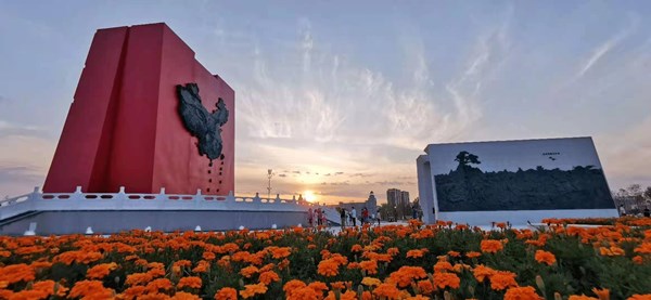撫遠(yuǎn)觀看日出最佳地點(diǎn),是位于我國陸地領(lǐng)土最東端的地標(biāo)景觀——華夏東極太陽廣場(chǎng)。廣場(chǎng)背靠祖國、面向東方,三角形的河口沙洲形狀如同鋒利的軍艦艦艏,以東極極標(biāo)雕塑為桅桿,象征著中國這艘巨輪正起航駛向東方。