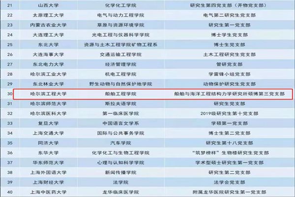 黑龍江經(jīng)濟(jì)網(wǎng)訊(全媒體見習(xí)記者 董廣碩 商祺)近日,教育部公布第二批全國高?!鞍賯€研究生樣板黨支部”和“百名研究生黨員標(biāo)兵”單位名單,哈爾濱工程大學(xué)船舶學(xué)院船舶與海洋工程結(jié)構(gòu)力學(xué)研究所碩博第三黨支部,以及智能學(xué)院博士研究生李明非榜上有名!