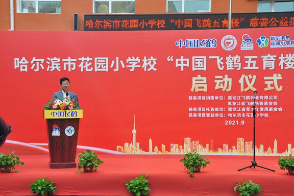飛鶴乳業(yè)黨委書記、飛鶴慈善基金會(huì)理事長(zhǎng)朱天龍在啟動(dòng)儀式上說(shuō),在中秋國(guó)慶即將到來(lái)之際,我們滿懷喜悅的心情,在百年名校哈爾濱市花園小學(xué)校舉行“中國(guó)飛鶴五育樓”公益慈善助教項(xiàng)目啟動(dòng)儀式,這是飛鶴乳業(yè)履行社會(huì)責(zé)任、情系教育事業(yè)的又一項(xiàng)助教工程。在黑龍江省貫徹落實(shí)黨中央“雙減”政策,深入推進(jìn)五育并舉,促進(jìn)學(xué)生德智體美勞全面發(fā)展的重要時(shí)期。飛鶴向哈爾濱市花園小學(xué)捐贈(zèng)625萬(wàn)元,用于花園小學(xué)“五育樓”項(xiàng)目改造,這是一項(xiàng)利在當(dāng)代,功在千秋的公益慈善助教項(xiàng)目,旨在更好地優(yōu)化我省基礎(chǔ)教育教師學(xué)習(xí)培訓(xùn)環(huán)境,為花園小學(xué)教學(xué)提供更好的辦學(xué)條件,也是助力黑龍江省基礎(chǔ)教育的改革。省教育廳副廳長(zhǎng)姜同河、團(tuán)省委副書記張濤對(duì)飛鶴乳業(yè)的慈善助教善舉給予充分的肯定和贊許?;▓@小學(xué)校長(zhǎng)曹永鳴代表學(xué)校的孩子們向飛鶴乳業(yè)的慈善捐助表達(dá)深深的謝意!