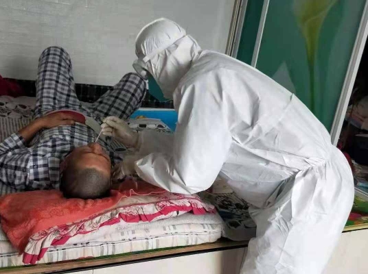 巴彥縣核酸采集現(xiàn)場(chǎng)還活躍著省醫(yī)院健康管理中心疾病康復(fù)部工作人員的身影,護(hù)士長(zhǎng)李曉莉率先垂范,發(fā)揮黨員先鋒模范作用,帶隊(duì)“出征”;隊(duì)員徐賢紅克服低血鉀、全身無力等困難,積極參戰(zhàn);隊(duì)員林虹則空腹血糖達(dá)10mmol/L,帶著胰島素請(qǐng)求“參戰(zhàn)”。三人早晨7點(diǎn)開始核酸采集工作,深入到各個(gè)鄉(xiāng)鎮(zhèn)村屯,更將核酸采集工作延伸到老鄉(xiāng)家中,為臥床及行動(dòng)不便的人進(jìn)行核酸采集工作,中飯和晚飯都是快速的吃一口盒飯或者泡面就地解決,然后又迅速投入到工作中。據(jù)了解,疾病康復(fù)部人均年齡都在50歲左右,此次抗疫所有的同事都克服自身重重困難,為完成使命,勇往直前,盡顯龍醫(yī)人的本色。