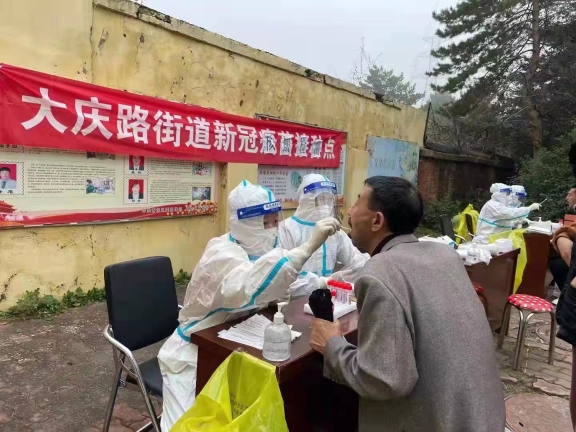 省醫(yī)院南崗院區(qū)心內(nèi)一科護(hù)士張思寧,是在值班中突然接到了電話(huà),需要隨時(shí)準(zhǔn)備外派進(jìn)行采集核酸任務(wù),但因正在值班中,沒(méi)有去成。第二天上班中,又接到了需要支援社區(qū)采集核酸任務(wù),張思寧立即就位。當(dāng)天支援的社區(qū)是黎明社區(qū),黎明社區(qū)是哈爾濱市比較大的一個(gè)社區(qū),張思寧以及同事共50人承擔(dān)了整個(gè)社區(qū)的核酸采集工作。當(dāng)?shù)竭_(dá)分配的地點(diǎn)時(shí),外面已經(jīng)排了很長(zhǎng)的隊(duì)伍,看不到尾,當(dāng)時(shí),聽(tīng)到居民說(shuō)的最多的一句話(huà)就是:累死了,排了幾個(gè)小時(shí)終于排到了。張思寧聽(tīng)到這些話(huà)時(shí),心中只有一個(gè)想法,我要快點(diǎn)為大家采集,我們來(lái)了,你們可以少等一些時(shí)間了。當(dāng)晚十一點(diǎn)多,外面依舊很多人在排隊(duì),而且還下起了雨,居民們有的撐著傘,有的穿著雨衣,其中有八十多歲的老人,還有兩三歲的孩童,都在雨中等待采集核酸。這時(shí),已經(jīng)工作了八個(gè)小時(shí)的張思寧,雖然已經(jīng)感覺(jué)到有些疲憊,但是看著這些冒雨等待的居民們,她覺(jué)得自己這些都微不足道了。直到凌晨一點(diǎn)多居民才少些,張思寧和同事們也才陸陸續(xù)續(xù)的結(jié)束了這一天的工作。