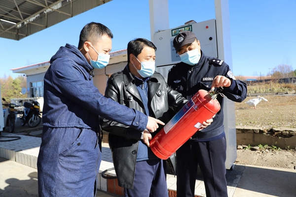 聯(lián)合檢查組還深入到林石油加油站、大商場(chǎng)等重點(diǎn)行業(yè)領(lǐng)域、人員密集場(chǎng)所,檢查了滅火器瓶體、鉛封、喇叭接口,以及消防箱、消防水帶、消防栓等情況。