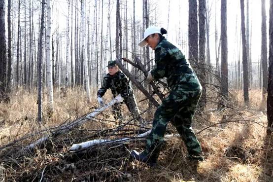 在撫育作業(yè)現(xiàn)地,寒冷的風(fēng)吹拂著干部職工的面龐,腳下過膝高的雜草直往鞋里鉆,一不小心就會踩進(jìn)冰冷的積水中。雖然工作環(huán)境較為艱苦,可沒有一個人掉隊(duì)退出,大家沒有牢騷,沒有埋怨,認(rèn)真撿拾著被壓木、腐朽木、枯死木、站桿、藤條及老舊伐根等影響中幼林生長的木材。雖然機(jī)關(guān)干部職工大多數(shù)人以前都沒有從事過森林撫育工作,但經(jīng)過前期培訓(xùn)和現(xiàn)地實(shí)踐,大家對撫育技術(shù)操作要領(lǐng)很快掌握嫻熟,一字排開有序地清林歸堆,彼此間默契呼應(yīng),不一會現(xiàn)地就出現(xiàn)了橫山碼放整齊的枝丫堆。