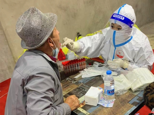 10月30日下午17時(shí),畢贏接到單位領(lǐng)導(dǎo)的通知,準(zhǔn)備好支援社區(qū)核酸采集,有可能今晚22點(diǎn)開(kāi)始,有可能明早8點(diǎn)開(kāi)始。就這樣,畢贏趕緊通知親戚朋友婚禮暫時(shí)取消,馬上要去社區(qū)支援。10月31日早8點(diǎn),由省醫(yī)院吳丹紅護(hù)士長(zhǎng)帶隊(duì),畢贏一行40名護(hù)士下沉到了新香坊鎮(zhèn)社區(qū)為那里的居民進(jìn)行核酸采集支援。就這樣,婚紗面前畢贏毅然決然地選擇了防護(hù)服,和她的戰(zhàn)友們并肩奔赴社區(qū)支援核酸采集,因?yàn)樗酪咔檫^(guò)后的婚禮才會(huì)更有意義。