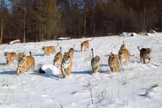 令人震撼的鏡泊湖吊水樓的冰瀑是牡丹江冬季的重要景點(diǎn)之一。在冰凌交錯(cuò)、銀裝素裹的純凈世界里,世界吉尼斯紀(jì)錄創(chuàng)造者——中國(guó)懸崖跳水奇人狄煥然,在零下二十多度的鏡泊湖吊水樓冰瀑上,伸展雙臂,凌空一躍,撲向不結(jié)冰的黑龍?zhí)端?,跳入落差?0米的水中,成為鏡泊湖景區(qū)冬季的一道獨(dú)特景觀。鏡泊湖水系水質(zhì)較好,水產(chǎn)資源極為豐富,大約有六十多種魚(yú),冬季體驗(yàn)鏡泊湖的大網(wǎng)捕魚(yú)、小網(wǎng)掛魚(yú),在每年辭舊迎新之際看一場(chǎng)冬捕,絕對(duì)是預(yù)示著年年有余好兆頭的絕佳體驗(yàn)。在漁夫們高亢的號(hào)子聲中,800多米長(zhǎng)的大網(wǎng)從冰洞中漸漸滑出,胖頭魚(yú)、鯽魚(yú)、鯉魚(yú)等翻滾著、跳躍著,冒著熱氣蹦到冰面,“萬(wàn)尾鮮魚(yú)出玉門(mén)”的奇觀景象讓人感嘆不已。橫道東北虎林園是世界上最大的東北虎人工飼養(yǎng)繁育基地和野化訓(xùn)練基地。在幾代養(yǎng)虎人的辛勤努力下,已繁育活體東北虎1100余只,建有猛虎園、靈長(zhǎng)類(lèi)館、幼虎生態(tài)館、高空玻璃棧道、珍稀動(dòng)物觀賞園、科普展覽館、觀虎長(zhǎng)廊、虎文化廣場(chǎng)等多個(gè)景點(diǎn)。在這里,可以感受到獸中之王奔跑在蒼茫林海雪原的風(fēng)馳電掣。也可以感受到成群東北虎躺臥在皚皚白雪“互談心事”的百般愜意,還可以領(lǐng)略到虎牛相斗、群虎撲食的驚險(xiǎn)刺激。