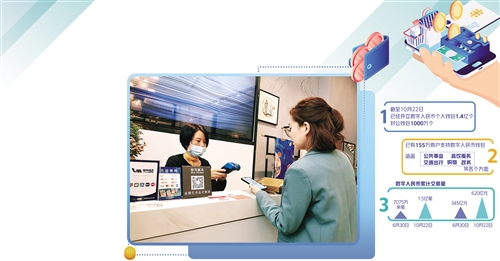 《中國數(shù)字人民幣的研發(fā)進展白皮書》公布的數(shù)據(jù)顯示,截至今年6月30日,共開通個人錢包2087萬余個。而最新數(shù)據(jù)顯示,截至10月22日,已經(jīng)開立數(shù)字人民幣個人錢包1.4億個。