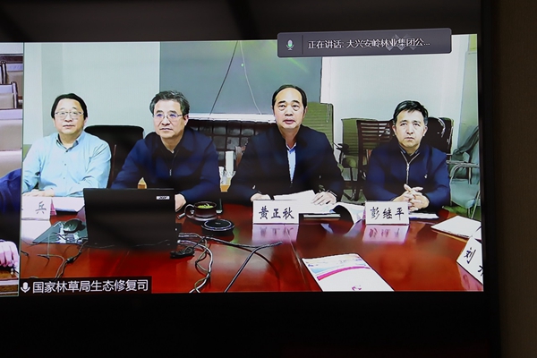 簽約儀式以視頻的形式召開。生態(tài)司司長、司支部書記張煒,副司長(正司局級)、司支部副書記黃正秋,生態(tài)司二級巡視員、司支委組織委員潘兵,綜合處處長、一級調(diào)研員彭繼平,森林城市處處長、一級調(diào)研員、司支委紀檢委員楊春,生態(tài)處副處長、三級調(diào)研員、司支委學習委員劉羿,在國家林草局主樓501房間,集團公司黨委常委、副總經(jīng)理劉志,集團公司生態(tài)修復管理處處長劉繼明,集團公司黨委老干部處(組織部副處長)范學利,阿木爾林業(yè)局黨委書記胡守慶,阿木爾林業(yè)局黨委副書記、局長韓鳳泉,阿木爾林業(yè)局黨委副書記呂光鑫,阿木爾林業(yè)局黨委委員、組織部部長王立昆在大興安嶺林業(yè)集團公司視頻會議室,參加了會議。
