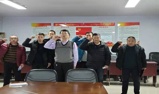 在中國共產(chǎn)黨入黨誓詞展示墻前,黨員干部們面向黨旗,高舉右手,重溫了入黨誓詞,我志愿加入中國共產(chǎn)黨,擁護黨的綱領(lǐng)......隨時準備為黨和人民犧牲一切,永不叛黨?;貞浫朦h過程加固不忘初心、牢記使命,永葆共產(chǎn)黨員政治本色的堅定政治信念。