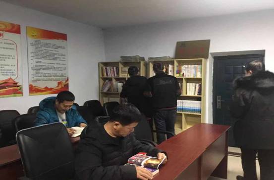 黨員干部們在會議室認真閱讀黨刊黨史等書籍?;ハ嘟涣髯x后心得體會,感悟革命前輩事跡的偉大歷史。發(fā)揚革命先進事跡,做新時代接班人。