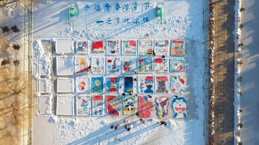 雪后的籃球場,變身為學(xué)生們的巨型畫板,大家在這里以“迎接建黨100周年”、“迎接北京2022冬奧會”為主題,在雪地上涂鴉,把雪后的校園裝扮得與眾不同。學(xué)生們發(fā)揮想象,用色彩描繪出更快、更高、更強(qiáng)的奧林匹克精神,以涂鴉展現(xiàn)著當(dāng)代中學(xué)生的青春風(fēng)采。