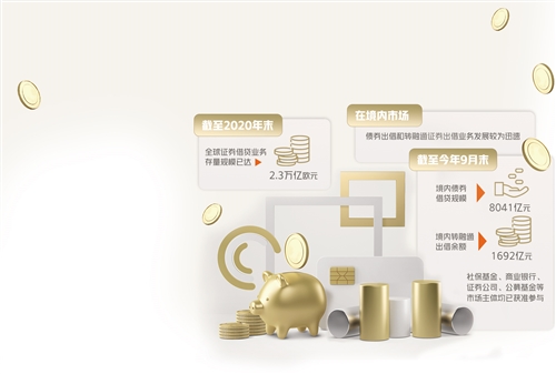 證券出借業(yè)務(wù)俗稱“融券”,是境內(nèi)外資本市場提高二級市場流動性的常見交易制度,發(fā)展較為成熟。截至2020年末,全球證券借貸業(yè)務(wù)存量規(guī)模已達(dá)2.3萬億歐元。在境內(nèi)市場,債券出借和轉(zhuǎn)融通證券出借業(yè)務(wù)發(fā)展較為迅速,截至今年9月末,境內(nèi)債券借貸規(guī)模8041億元,境內(nèi)轉(zhuǎn)融通出借余額1692億元,社?;稹⑸虡I(yè)銀行、證券公司、公募基金等市場主體均已獲準(zhǔn)參與。