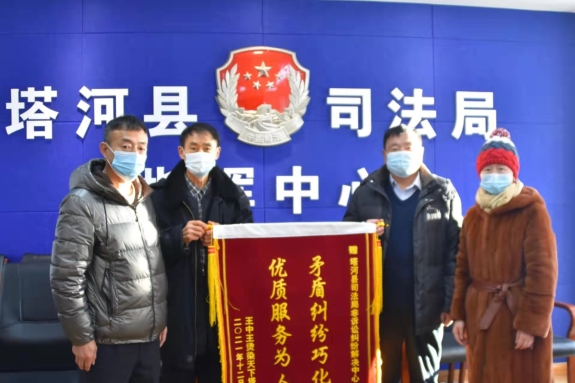 2021年8月3日,徐麗莉、田桂龍夫妻因交通事故受傷,在賠償上雙方當(dāng)事人協(xié)商一直沒有結(jié)果。2021年12月13日徐麗莉、田桂龍夫妻約對方到非訴訟糾紛解決中心申請調(diào)解,經(jīng)過一個上午的調(diào)解,雙方終于達成了協(xié)議,當(dāng)天徐麗莉、田桂龍夫妻就拿到了賠償款。為表達對訴訟中心的感謝,徐麗莉拖著尚未痊愈的雙腿和丈夫一起到塔河縣司法局贈送錦旗一面,感謝司法局非訴訟糾紛解決中心為民解憂做出的努力。