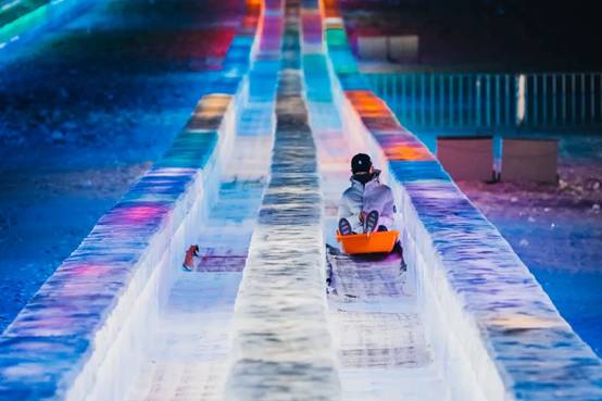 作為哈爾濱冰雪大世界最具人氣的游樂項(xiàng)目,今年的超級(jí)冰滑梯滑道長(zhǎng)達(dá)423米,高低落差達(dá)21米,100米滑行速度快過蘇炳添創(chuàng)造的9秒83新亞洲紀(jì)錄,游客乘坐大滑梯時(shí)也能體驗(yàn)一把飛人的感覺。