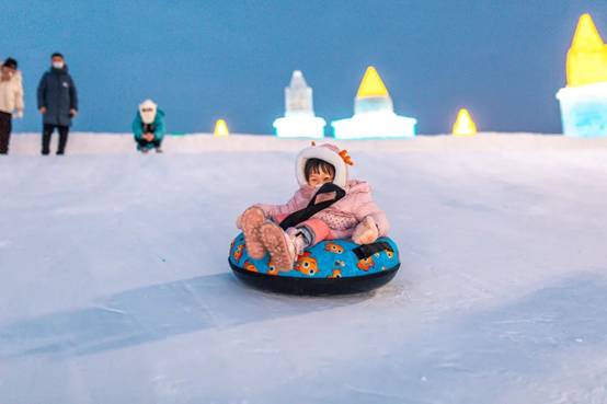 冰雪大世界園區(qū)帶給游客速度與激情的項(xiàng)目還有雪圈,家長(zhǎng)和孩子可以一同玩耍,處處充滿歡聲笑語。今年的雪圈分為兒童雪圈和趣味雪圈,無法乘坐大滑梯的孩子們可以在兒童雪圈感受飛一般的速度,絕對(duì)不虛此行。