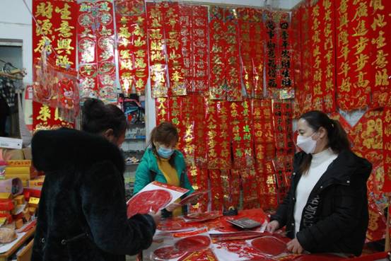 節(jié)慶用品的攤位上,受年輕人喜歡的LED串燈,小朋友們愛不釋手的虎年燈籠,老人們必買的吉祥年畫,讓人目不暇接。在陳娟超市的入口處,樹立著醒目的防疫提示牌,顧客需自覺地掃碼、測溫、帶口罩方可進入超市購買商品。超市的工作人員忙著將一車車貨物上架補貨,各種各樣的新鮮蔬菜和五顏六色的水果擺滿貨臺,老百姓需要的年貨應有盡有。由于市場人流量密集,超市嚴格遵守人員、貨品、場所等各項疫情防控要求,每天都有專人進行消殺,在滿足職工群眾購買年貨需求的同時,確保了職工群眾的健康安全。