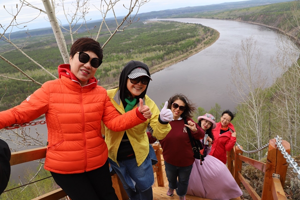游客深入到阿木爾林業(yè)局銀環(huán)島最佳觀景平臺,飽覽祖國的大美風光(王力 攝)