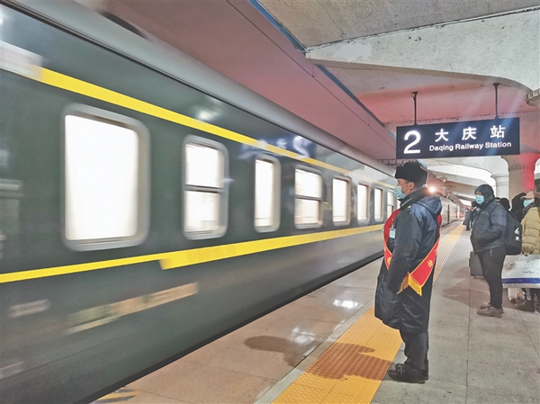 由于節(jié)后返程客流劇增,大慶地區(qū)去往海拉爾的4趟旅客列車(chē)無(wú)法滿足企業(yè)返崗需要,為幫助企業(yè)解決油田職工返崗復(fù)工困難,哈爾濱局集團(tuán)公司全力協(xié)助大慶油田有限責(zé)任公司辦理職工出行事宜,為企業(yè)量身定制了油田職工返崗復(fù)工專(zhuān)列開(kāi)行方案。在春運(yùn)期間運(yùn)力緊張的情況下,專(zhuān)門(mén)調(diào)集10輛空調(diào)車(chē)體,全面進(jìn)行設(shè)備檢修維護(hù)和車(chē)輛消毒作業(yè),滿足石油工人出行需求。負(fù)責(zé)運(yùn)輸組織工作的大慶站為油田職工提供專(zhuān)項(xiàng)聯(lián)絡(luò)、專(zhuān)區(qū)候車(chē)、專(zhuān)人引導(dǎo)服務(wù),及時(shí)辦理團(tuán)體購(gòu)票,增開(kāi)進(jìn)站通道,提前做好候車(chē)區(qū)域通風(fēng)、消毒和保潔工作,配合地方政府嚴(yán)格落實(shí)進(jìn)站掃碼、測(cè)溫等防疫措施,在驗(yàn)票進(jìn)站、安檢、候車(chē)、乘車(chē)等環(huán)節(jié)設(shè)置人員進(jìn)行引導(dǎo)。并利用小喇叭、電子顯示屏、車(chē)站廣播等載體,循環(huán)播放疫情防控措施、登乘列車(chē)注意事項(xiàng),引導(dǎo)務(wù)工人員分散候車(chē)就座。鐵路部門(mén)精心抽調(diào)服務(wù)經(jīng)驗(yàn)豐富的哈爾濱客運(yùn)段北京車(chē)隊(duì)列車(chē)工作人員負(fù)責(zé)乘務(wù)工作,提前做好列車(chē)通風(fēng)消毒和防疫保潔工作,為乘客準(zhǔn)備了一次性醫(yī)用口罩和消毒洗手液,全力營(yíng)造健康安全的出行環(huán)境。
