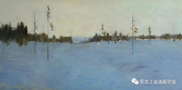 《藍色的雪原》 木板油彩 33.5×67cm 1984年