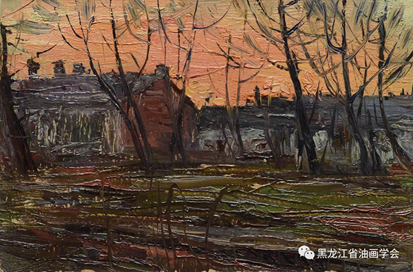 《夕陽入火》12.6×17.8cm 紙本油彩 1958年