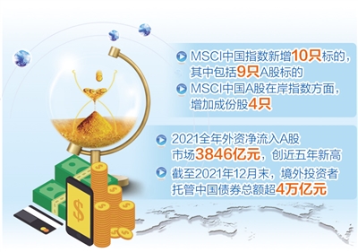與此同時(shí),境外投資者持有中國(guó)債券規(guī)模也創(chuàng)下歷史新高。數(shù)據(jù)顯示,截至2021年12月末,境外投資者托管中國(guó)債券總額超4萬(wàn)億元。