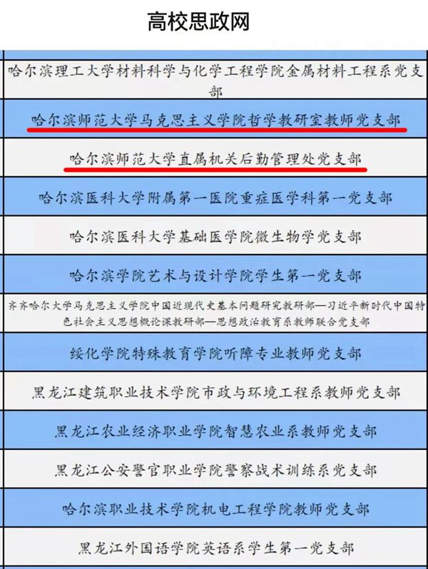 黑龍江經(jīng)濟(jì)網(wǎng)訊(黑龍江日?qǐng)?bào)全媒體見習(xí)記者董廣碩 商祺)根據(jù)《教育部辦公廳關(guān)于開展第三批新時(shí)代高校黨建示范創(chuàng)建和質(zhì)量創(chuàng)優(yōu)工作的通知》要求,經(jīng)哈爾濱師范大學(xué)校黨委組織申報(bào)、省級(jí)黨委教育工作部門推薦、資格審查、專家評(píng)審、教育部黨的建設(shè)和全面從嚴(yán)治黨工作領(lǐng)導(dǎo)小組成員單位集中審議、結(jié)果公示,遴選產(chǎn)生了全國黨建工作示范高校、標(biāo)桿院系和樣板支部。哈爾濱師范大學(xué)馬克思主義學(xué)院哲學(xué)教研室教師黨支部和直屬機(jī)關(guān)后勤管理處黨支部獲批“全國黨建工作樣板支部”。到目前為止,哈爾濱師范大學(xué)共獲批1個(gè)全國黨建工作標(biāo)桿院系,4個(gè)全國黨建工作樣板支部,1個(gè)全國研究生樣板黨支部,獲批數(shù)量居于省屬高校首位。