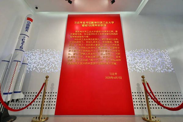 走進“哈工大中心”,首先映入眼簾的就是習近平總書記致哈工大建校100周年賀信。學校通過該中心的展示持續(xù)深入宣講宣傳習近平總書記賀信精神,以杰出人才培養(yǎng)和國之重器打造的生動故事引領(lǐng)青少年勵志成才,以航天第一?!凹獗蔽幕I(lǐng)社會文化發(fā)展。以哈工大在黨的領(lǐng)導下取得的歷史成就為主要內(nèi)容,創(chuàng)新策劃系列展覽展示和互動體驗,展示哈工大與中國航天同頻共振66年的發(fā)展歷史。