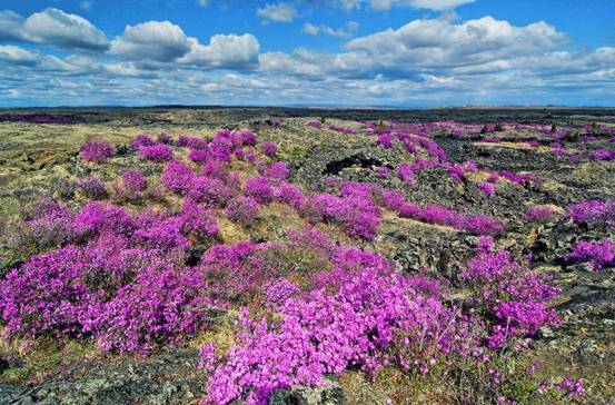 另一獨(dú)具北國風(fēng)光特色的是“興安杜鵑”,又稱“映山紅”“達(dá)子香”“達(dá)達(dá)香”,粉紅色的花朵與純白色的雪山是黑龍江高山叢林之間的春季奇景。其中,在牡丹江鏡泊湖景區(qū)及周邊熔巖臺地盛開的杜鵑花,林在石上、石在花中、花在石上,石海、花海、林海形成罕見的自然奇觀。此外,齊齊哈爾龍江縣的杜鵑山景區(qū)、以興安杜鵑為市花的伊春小興安嶺、雙鴨山的大頂子山、黑河的錦河大峽谷、大興安嶺的百泉谷生態(tài)旅游風(fēng)景區(qū)等地,都可以探尋到興安杜鵑的芳蹤。