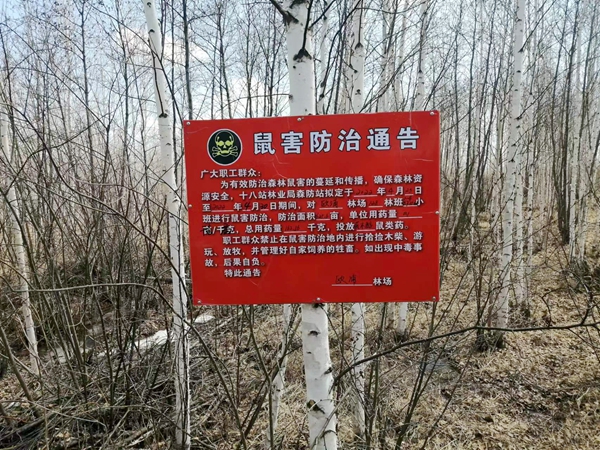 宣傳教育。歐浦林場(chǎng)防治結(jié)束后,在防治區(qū)域懸掛警示標(biāo)牌,同時(shí)發(fā)放宣傳彩頁(yè)和向過(guò)往群眾及周邊農(nóng)牧民講解春季森林鼠害危害性、鼠藥的毒性,引導(dǎo)加深廣大群眾對(duì)春季森林鼠害防治工作的認(rèn)識(shí),提醒群眾注意人畜生活管理,強(qiáng)化其自我保護(hù)和防范意識(shí),確保生命財(cái)產(chǎn)安全。