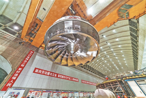 單臺白鶴灘100萬千瓦水輪發(fā)電機(jī)組,50米高、8000多噸重,運轉(zhuǎn)1小時能產(chǎn)生100萬度電,可滿足一個現(xiàn)代家庭150年的用電需求,是當(dāng)之無愧的水電“巨無霸”。