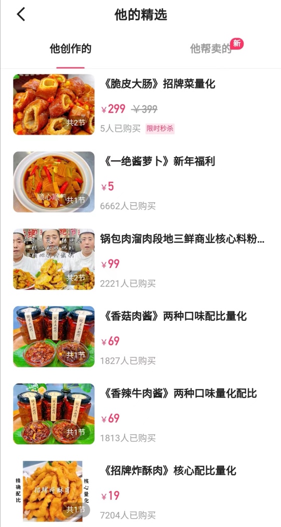 作為一位有著25年美食領(lǐng)域從業(yè)經(jīng)驗的老廚師,韓總廚憑借一手精湛的廚藝,來到快手后很快就積累了上萬粉絲,為他打造付費(fèi)課程奠定了基礎(chǔ)?!皩Ρ攘似渌_(dá)人的內(nèi)容,我覺得自己還是有一定的內(nèi)容優(yōu)勢的,所以也試著做了課程,看看是否有人愿意購買?!?