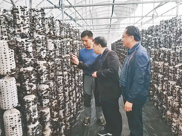 科研人員對黑木耳規(guī)?;a進行技術指導。