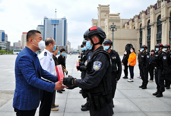 公益活動首批慰問對象是剛從抗疫一線歸來的哈爾濱市公安局巡特警支隊隊員。本次疫情期間,他們馳援五常市拉林鎮(zhèn)、哈爾濱市平房區(qū)和賓縣,先后核查車輛3700余臺,幫助群眾1100多人,為群眾配送餐食10萬余份、飲用水20余萬瓶、防疫物資9000余件,用血肉身軀筑起了抗擊疫情的鋼鐵長城,詮釋了“疫情當前,特警在先”的使命擔當。“感謝黑龍江日報報業(yè)集團和愛心企業(yè)送來健康產品。今后我們會一如繼往做好本職工作,哪里需要哪里上,當好人民的忠誠衛(wèi)士。”接過“小綠君”,哈爾濱市公安局巡特警支隊特警一大隊二中隊教導員劉甲洲一臉幸福。