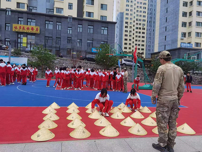 5月30日早8:00,初一學(xué)年100名學(xué)生分成四組開始了為期一天的拓展訓(xùn)練。拓展訓(xùn)練前,教練首先告訴同學(xué)們:軍人以服從紀(jì)律為天職,作為中國(guó)人應(yīng)懷著一顆感恩之心回報(bào)社會(huì)、建設(shè)祖國(guó)。